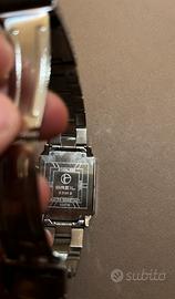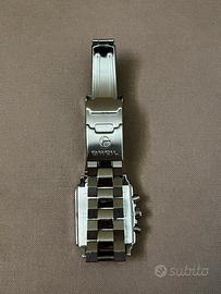 Movimento al Quarzo con funzioni crono e datario alle ore 4, resistenza all'acqua fino a 10 atm.