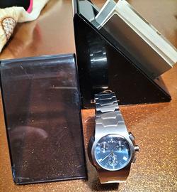 Orologio cronografo Breil Donna ref. 2519781025 vintage periodo 2005 circa, completamente in acciaio,water resistant 10 atm, quadrante blu elettrico, bracciale con chiusura a scomparsa, movimento miyota OS10 , completo della sua scatola in plastica ( la scatola è rotta in uno spigolo) . Orologio tenuto in collezione in pratica mai portato, in condizioni perfette pari al nuovo ,lievissimo graffi,vetro zaffiro , batteria e guarnizione sostituiti nel 2025 e mai utilizzato, perfettamente funzionante. Diametro cassa escluso corona 36 mm , pagato oltre 250 euro nel 2005, cedo per cessata collezione. Visto e piaciuto , preferisco ritiro a mano