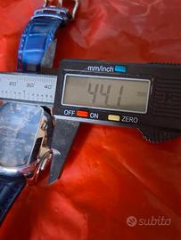 Quadrante: Di colore blu con indici applicati e l'iconico numero " Vetro Opaco pila nuova appena cambiata perfettamente funzionante con scatola tutto Originale.