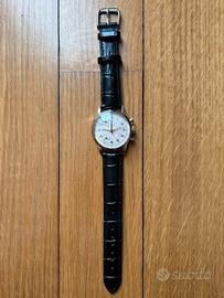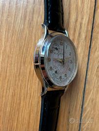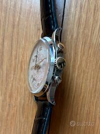 VENDO orologio vintage/antico cronografo/chrono/crono endura sport. L’orologio è risalente agli anni ‘60-‘70. L’orologio funziona perfettamente per quanto riguarda l’ora, tiene bene il tempo ma il funzionamento del cronografo deve essere rivisto, all’avvio del cronografo la lancetta nera parte a contare e tramite l’altro pulsante si può stoppare ma non è possibile azzerarlo e i contatori a ore 11 e 7 non funzionano Cassa e fondello in acciaio perfette condizioni 2 pulsanti a pompa, uno per azionare e mettere in pausa il cronografo e uno per azzerarlo. Bellissimo quadrante originale, con marchio swiss made (a ore 6) a due contatori in condizioni perfette. L'orologio è corredato da un cinturino generico appena sostituito. VALUTO PROPOSTE O SCAMBI Per qualsiasi informazione o richiesta foto o video non esitate a contattarmi, possibilità di spedizione o ritiro da concordare. longines, omega, lanco, baume & mercier, eberhard