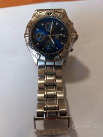 Orologio Cronografo Fossil Blue, bellissimo con quadrante blu e cinturino metallico, degli anni 2000. Con una batteria installata e una di riserva.