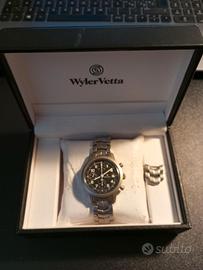 Cronografo meccanico Wyler Vetta Uptown, carica automatica, movimento Valjoux 25 rubini, 28800 alternanze, cassa e bracciale in acciaio satinato, vetro hesalite bombato, diam. 38 mm, anno 1999