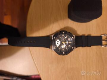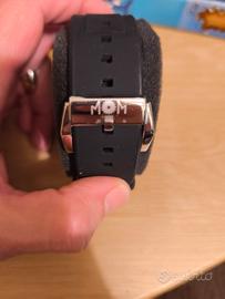 In perfette condizioni usato un paio di volte con batteria nuova, senza scatola. Orologio cronografo MOM Manifattura Orologiaia Modena DETTAGLI DEL PRODOTTO Collezione: Winner Chrono Alimentazione/Movimento: Al quarzo Tipo carica: Al quarzo Display: Dual Time Funzioni: Cronografo Impermeabilità: 05 ATM water resistant Materiale cassa: Acciaio Colore cassa: Nero Colore quadrante: Nero Materiale cinturino: Silicone Colore cinturino: Nero Diametro cassa (mm): 48 M.O.M. Manifattura Orologiaia Modenese Orologio Cronografo al Quarzo Giapponese Uomo con Cinturino in Silicone Orologi M.O.M.: Manifattura Orologiaia Modenese Dall’Emilia Romagna nasce il progetto di M.O.M., un concept unico dal design interamente italiano, adatto ai polsi maschili e femminili. L’artigianalità propria di questo territorio, di questa terra, insieme alla passione per la meccanica, hanno portato all’origine di questo marchio di orologi. M.O.M. entra nel mondo dell’orologeria come progetto di Lowell, per distinguersi grazie ai suoi modelli univoci e decisi. Le linee degli orologi M.O.M. coniugano lo stile e l’eleganza propria del passato, con il design e la brama di innovazione che caratterizza chi guarda al futuro. Orologio M.O.M Manifattura Orologiaia Modenese Uomo Winner Chrono in Acciaio PM7110-926