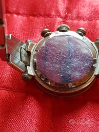 L'orologio è degli anni 90, praticamente mai usato.. Infatti sarebbe un cronografo ma non ricordo il funzionamento dei due pulsantini laterali.. I vetro è perfetto.. Il fondello non è perfetto in quanto è stato conservato in un sacchettino e quindi con il cinturino in acciao sempre a contatto. Sul pulsante centrale manca la "perlina" facilmente reperibile