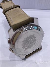Cassa in acciaio da 44 mm. Finitura satinata antiriflesso, fondo cassa in acciaio lucido serrato a vite, corona a vite, vetro minerale 700 Vickers antigraffio con trattamento antiriflesso, impermeabilità a 10 ATM (100 M)