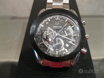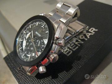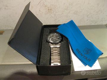 Vendo orologio cronografo con movimento al quarzo made in Japan marca “ Benyar “. Orologio di buona qualità, dalla linea molto elegante e nello stesso tempo sportiva. Venduto come usato ma è praticamente nuovo, indossato tre/quattro volte. L'orologio verrà spedito con batteria nuova!!