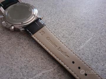 Vendo, orologio cronografo brand Rubini firma, diametro 38 mm esclusa corona, cassa e fondello in acciaio inox, quadrante in carbonio, movimento al quarzo Miyota OS10. L'orologio è perfettamente funzionante, da segnalare qualche piccolo graffio sul vetro, che si vede solo in controluce. Cinturino in vera pelle nuovo.