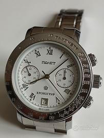 Orologio Cronografo Russo cassa da 40 mm spessore 12 mm come nuovo carica manuale perfettamente funzionante, senza scatola e garanzia, cinturino generico in acciaio, prezzo compresa la spedizione.