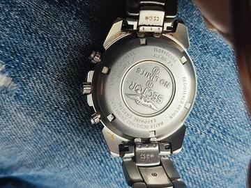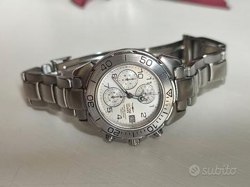 Orologio Cronografo Sector 450 ref. 2653944015. Cassa 38mm esclusa corona, splendido e raro quadrante grigio metallo ,bracciale con maglie alternate satinate, vetro zaffiro senza graffi corona a vite WR 200mt . Adatto ad un polso medio , non ho maglie bracciale aggiuntive . Funziona perfettamente Chrono 3 lunette con decimi di secondo