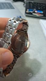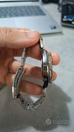 Vendo orologio cronografo Stendardo Italy – linea Immersion, cassa e bracciale in acciaio.Modello sportivo con ghiera numerata stile subacqueo e quadrante giallo con contatori cronografici a contrasto (blu/rosso). Look deciso e particolare, tipico anni 2000.Caratteristiche:Cronografo funzionanteWater Resistant 5 ATMCassa in acciaioBracciale originale in acciaioDatarioMovimento al quarzoCondizioni: usato in ottime condizioni estetiche, normali segni leggeri da utilizzo sul bracciale e sulla cassa (visibili in foto).Orologio solido e di presenza, ideale per chi cerca uno stile sportivo importante.Disponibile per ritiro o spedizione.