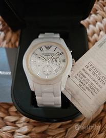 Orologio Cronografo da uomo Emporio Armani della collezione Valente, cassa in Ceramica di colore Bianco da 43mm di diametro, cinturino in Ceramica di colore Bianco. L'Orologio è water resistant fino a 3 ATM e verrà spedito nella confezione originale con la garanzia ufficiale Emporio Armani internazionale di 2 anni. Il codice prodotto è AR1403