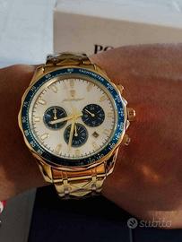 Splendido orologio da uomo firmato POEDAGAR, modello cronografo sportivo ed elegante, completamente color oro. L'orologio è nuovo, mai indossato, ancora con la pellicola protettiva trasparente sulla cassa e sul cinturino, come visibile nelle foto. Caratteristiche principali: Marca: POEDAGAR Movimento: Quarzo di precisione. Quadrante: Bianco crema con dettagli dorati, tre sotto-quadranti funzionali per il cronografo (misurazione del tempo) e datario a finestrella tra le ore 4 e le ore 5. Lunetta: Blu scuro con scala tachimetrica dorata, per un look sportivo tipo "Daytona". Cassa e Cinturino: Acciaio inossidabile con placcatura color oro lucido e satinato. Il cinturino ha una maglia centrale lavorata molto particolare. Resistenza all'acqua: 30M (3 ATM), resistente a schizzi accidentali e pioggia (non adatto per nuoto o doccia). VETRO ANTI GRAFFIO. Fondello: In acciaio, con incisioni del brand e adesivo "QC PASS". Cosa include la vendita: - L'orologio POEDAGAR color oro (nuovo e sigillato). - La scatola originale Poedagar bianca (esterna). - La scatola regalo Poedagar blu scuro (interna), rigida ed elegante. - Il panno in microfibra arancione per la pulizia. -Il cartellino di garanzia internazionale. -Un pratico strumento (levamagli) per regolare la lunghezza del cinturino in autonomia. Perfetto come idea regalo o per arricchire la propria collezione. Le foto sono reali e mostrano esattamente l'oggetto che riceverete. Spedizione rapida e imballaggio accurato. Per qualsiasi domanda, non esitate a contattarmi! #orologio #orologiouomo #poedagar #cronografo #nuovo #idearegalo #orologiodorato #style #accessori #vinteditalia #watchesofinstagram #occasione