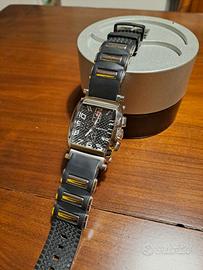 Cronografo in acciaio e carbonio con cinturino in gomma con inserti in acciaio, perfettamente funzionante. Elegante e sportivo allo stesso tempo!