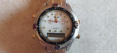 Orologio Cronografo vintage GAS KIDDO Quartz Titanium N° S279 Cronografo con datario. Anni 90 Cassa acciaio Water Resistant Cinturino in acciaio Quadrante bianco diametro 40 mm Nuovo funzionante. Senza astuccio.