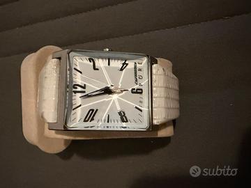 Orologio cronotech bianco unisex cassa acciaio,quadrante bianco,display analogico, veteo antigraffio minerale a batteria