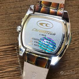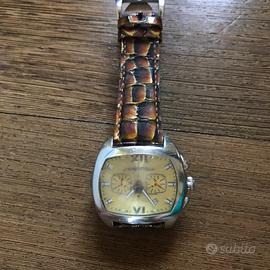 Orologio cronotech quadrante champagne vetro a prisma cinturino in pitone