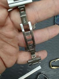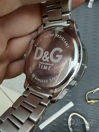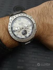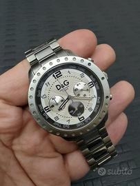 Cronografo D&G Time Navajo. Movimento al quarzo VD53 cronografico. Cassa in acciaio inox. Cinturino originale D&G in acciaio con CLASP deplorante. Quadrante bitonale con lavorazione a nido d'ape. Vetro in ottime condizioni. Corona logata. Batteria nuova. Orologio indossato pochissimo