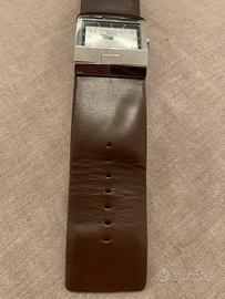 Orologio uomo D&G cassa in acciaio, movimento al quarzo e cinturino in pelle marrone con scatola in plastica rigida bianca logata.