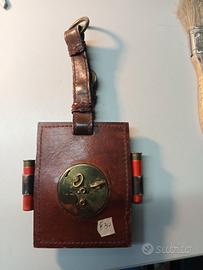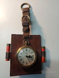 Piccolo orologio da parete con sveglia. Funzionante . Gadget della ditta Giulio Fiocchi di Lecco come si legge nelle due false cartucce a corredo.