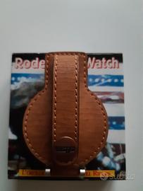Vintage anni 80, orologio da cintura WRANGLER nuovo, mai usato, ancora con pellicola protettiva sul vetro e completo di scatola originale, vendo a 20 euro. Piccola abrasione della pelle in prossimità del bottone fatta con l'unghia sganciando l'orologio (vedi foto 4).
