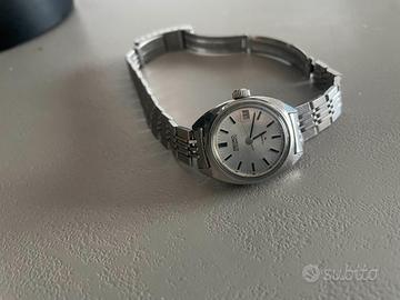 Questo orologio da donna automatico vintage SEIKO 2205-0050 è in buone condizioni generali L'orologio funziona correttamente. È dotato di un quadrante argentato e viene fornito con un vero bracciale in acciaio inossidabile, larghezza 23 mm (esclusa corona). Controlla le foto per i dettagli sulle condizioni.