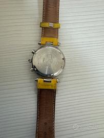 Orologio cronografo donna Pryngeps Luxury con cristalli, lapislazzuli blu e cassa in madreperla. Cinturino in pelle originale con segni di usura. Manca un cristallo. Batteria nuova. L’orologio funziona perfettamente Cronografo: Cartier Colore quadrante: madreperla Colore cassa: argento con cristalli Materiale cassa: acciaio inossidabile Dimensioni cassa: 38 mm Materiale cinturino: pelle Colore cinturino: giallo Indici: indici, cristalli Vetro: cristallo minerale Fibbia: fibbia standard Movimento: al quarzo Codice: CR891