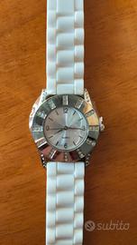 orologio nuovo da donna argento con brillantini e cinturino bianco in gomma.