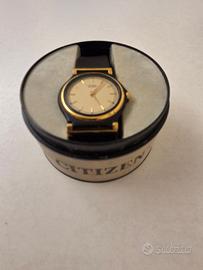 Vendo orologio da donna Citizen al quarzo. Vintage degli anni '80. Diametro quadrante cm. 3, mai usato ottime condizioni. Nella sua confezione originale che purtroppo ha subito 2/3 macchioline. In acciaio color Champagne e cinturino in pelle vera nero Perfettamente funzionante, batteria nuova. Pezzo raro, da collezione. Si prega di contattare Graziano 3404110406 dalle 10 alle 19. Si spedisce dopo eventuale bonifico compreso di spese di spedizione (Euro 10) oppure la merce va ritirata personalmente e pagata in contanti, a Vago di Lavagno (VR) o, previo accordo nelle immediate vicinanze, max 10 Km.