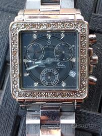 Cronografo da donna Breil.Casda quadrata 30x30mm con ghiera incastonata da pietre.Cinturino in acciaio.