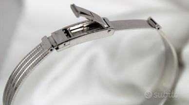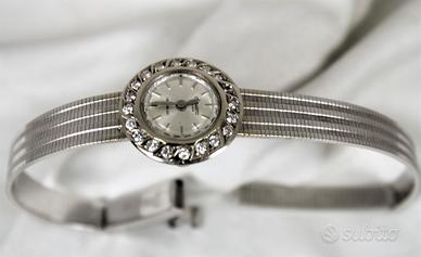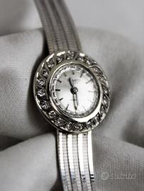Originale e prezioso orologio da donna in oro bianco massiccio 750 della nota casa Svizzera " Veri Watch Swiss " braccialato, con cinghietta in oro integrata.