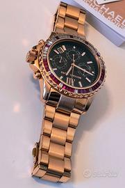 Vendo uno splendido orologio da donna, marca: Michael Kors Everest (modello MK6972), 39-42mm. Cronografo, Datario, con cassa e bracciale in acciaio inossidabile color oro rosa, quadrante nero con motivo sunray e lunetta impreziosita da cristalli trasparenti e color bacca. Indossato solo poche volte, in condizioni eccellenti, quasi come nuovo. Perfettamente funzionante, senza alcun graffio. Un accessorio di classe, ideale per chi cerca un orologio elegante, sofisticato e distintivo. Prezzo di listino: €349. Acquistato a metà 2023. Vendo con scatola originale.