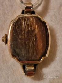 Orologio Omega d'epoca da donna. Caratteristiche principali: - Placcato Oro (80 microns) - Movimento: Meccanico a carica manuale. L'orologio funziona bene e tiene correttamente il tempo. - Quadrante: Originale con logo Omega e indici applicati. Presenta una patina del tempo. - Cassa: Tono oro in buone condizioni estetiche, con normali segni di usura coerenti con l'età. Quadrante: 1.4x1.4 cm; spessore 0.5 cm Senza cinturino.