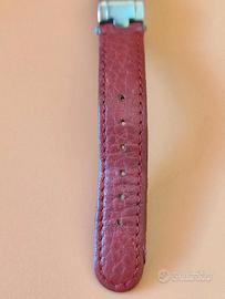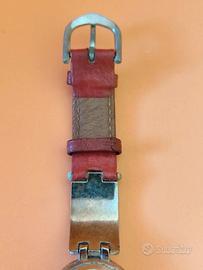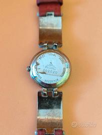 Orologio "Regolo" da donna; diametro cassa 24 mm; 26 mm con corona; lug to lug 32 mm. Cinturino in pelle di colore rosso e da 14 mm in discrete condizioni.