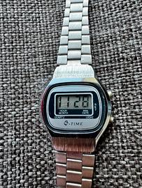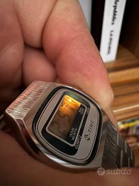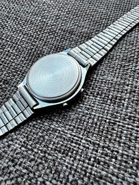 Orologio al quarzo anni ‘80 da donna in eccellenti condizioni. Cassa e bracciale in acciaio e originali. Batteria appena sostituita, funzionante. Display perfettamente visibile (cosa non frequente per orologi così anziani). Tutti i tasti perfettamente funzionanti. Funzione ora, data, secondi e alternanza data/ora. Illuminazione del display funzionante! Una vera chicca in condizioni quasi NOS! Diametro circa 27mm