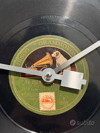 Orologio da parete realizzato con vero disco in vinile Grammophon, dal forte stile vintage e retrò. Design originale con etichetta d’epoca e lancette in metallo, ideale come arredo industriale, decorazione musicale o idea regalo per amanti del vinile, musica e design vintage. Funzionante e scenografico, perfetto per casa, studio o negozio.