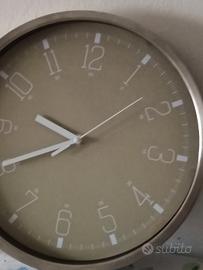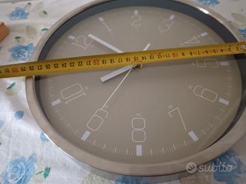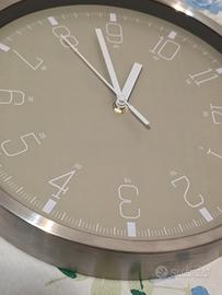 Vedi questo splendido orologio da parete dal design pulito ed elegante. La combinazione tra il bordo in metallo satinato e il quadrante color tortora/fango lo rende un pezzo d'arredamento versatile, capace di adattarsi sia a un ambiente moderno che a uno stile più classico.