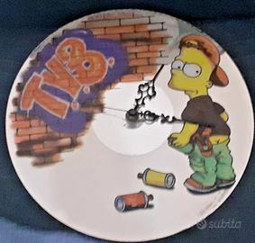 DA COLLEZIONE OROLOGI A MURO sui 30x30cm, DESIGN CARTOON I THE SIMPSONS STREET ART GRAFFITI ARTE UNDERGROUND. FORMA TIPO DISCO VINILE LP, A SPECCHIO (MIRROR UN PO OPACO PER VIA DEL TEMPO). FUNZIONANTE, A BATTERIA. COME FOTO. GADGET CARTONI ANIMATI FUMETTO CARTOON MATT GROENING