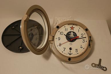 Offro questo orologio da parete di fabbricazione sovietica. Da ciò che ne so io era usato sulle imbarcazioni fluviali. Questi orologi venivano costruiti dalla fabbrica Vostok a Chistopol, in Russia.