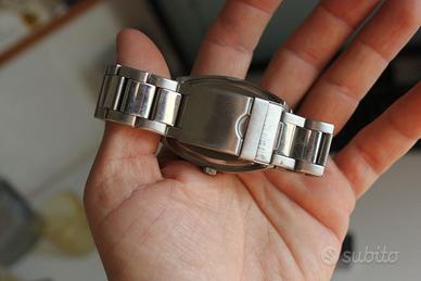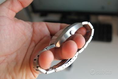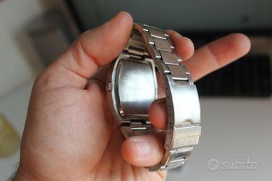 Orologio con una quindicina di anni di vita, usato e con segni visibili in foto, funzionante a batteria (presente nell'orologio ma da sostituire), condizioni come da foto, visto e piaciuto.