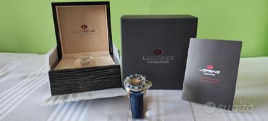 IN VENDITA SOLO CON ACCORDI TELEFONICI. Orologio da polso automatico swiss made Lorenz Hydro Sub; cassa in acciaio inossidabile da 42mm, vetro zaffiro, quadrante interno nero con indici tondi, ghiera in ceramica blu girevole unidirezionale, impermeabile fino a 500m, doppio cinturino da 22mm in acciaio inossidabile + pelle scamosciata blu, rigorosamente originale è completo di tutto (come da foto allegate)