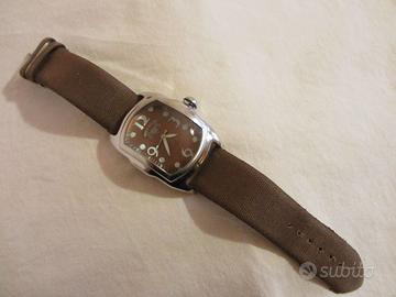 Materiale del cinturino: tessuto marrone all’esterno, color crema all’interno (usurato), fibbia in acciaio inossidabile