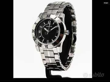 orologio d da polso-donna- Mercury ME10230-SS-3 movimento svizzero. quadrante nero, sfere e indici colore argento, lucido, numeri romani, movimento quarzo svizzero, bracciale a fascia di acciaio inossidabile di colore argento, adattabile fino a 19 cm.