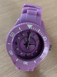 Orologio da polso donna marca GLAM, cinturino in silicone lilla, water resistant, cassa posteriore in acciaio inossidabile, misura lunghezza orologio cm 21, con Swarovski e con confezione originale. Pila da sostituire