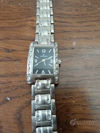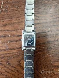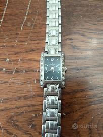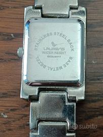 Orologio da polso donna vintage, anni '80, marchio Lorens. Quadrante nero, cinturino in acciaio; poco usato, buone condizioni. Lunghezza totale cm 20, larghezza cinturino cm 1,5, larghezza quadrante cm 2.