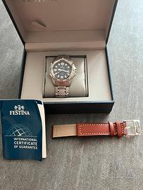 Splendido orologio sportivo vintage, nuovo , corredato di box originale Festina e cinturino nuovo in pelle marrone