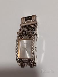Elegante orologio da polso Guess con una cassa rettangolare e cinturino in metallo. - Dettagli scintillanti lungo la cassa. - Quadrante argentato con indici a bastone. - Design moderno e raffinato. Descrizione: -Elegante orologio Guess da donna con cassa rettangolare e cinturino in maglia metallica. - Dettagli con cristalli scintillanti. - Quadrante con finitura a raggiera. Vedi foto mancano tre Swarovsky come da foto.... batteria da sostituire....ottimo anche per ricambi.