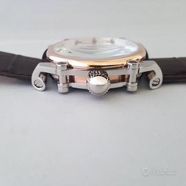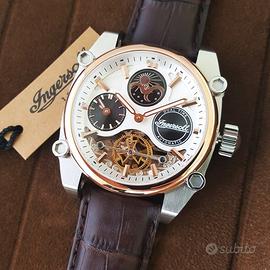 Vendo bellissimo orologio Ingersoll automatico anno 2025 Uomo, 46mm Orologio nuovo nella confezione originale con garanzia. Modello speciale con quadrante scheletrato a metà apertura, che mostra il movimento in azione. Movimento automatico con 22 rubini. Materiale cassa: Acciaio inossidabile dorato 316L Materiale cinturino: Pelle di alta qualità Diametro cassa: 45-46mm Nuovo, mai usato in confezione originale. Compresa garanzia della casa madre. Ancora con pellicola sul quadrante e sulla cassa.