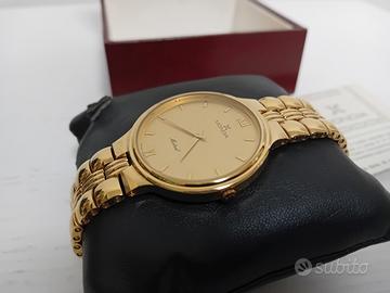 Vendo orologio da polso marca Mondia by Zenith, modello Mistral, con cassa, cinturino, indici applicati e lancette laccati in oro giallo, cassa diametro 32 mm, spessore soli 5.80 mm, vetro minerale.