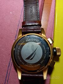 Orologio da polso " Nautica " in acciaio color rame e sfondo nero, cronografo e water resistente ( 200 mt. ).Usato poco, vendesi a € 120. Prezzo non trattabile. tel. 3501721482.