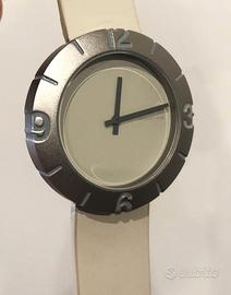 Orologio da Polso NAVA DESIGN mod.: SLICE - NENDO Design Quartz Watch In confezione originale ed in ottime condizioni, l'orologio è stato indossato una sola volta. Perfettamente funzionante, presenta insignificanti e piccolissimi segni d'uso. La confezione è in ottimo stato; solo il cartoncino esterno (che avvolge la confezione rigida) risulta usurato in alcune parti. Se realmente interessati all'acquisto, posso fornire, su richiesta, foto che illustrano ulteriormente le condizioni. No perditempo e irricevibili proposte. DESCRIZIONE: Lo studio giapponese Nendo ha disegnato l’orologio da polso Slice per l’italiana Nava Design “affettando” un cilindro di metallo a intervalli regolari. Slice, disegnato da Nendo per Nava Design, è un orologio che sembra essere stato creato affettando un pezzo cilindrico di metallo a intervalli regolari. Ciascuno dei due disegni – “numeri” e “gradazioni” ricorda a chi indossa l’orologio ciò che è stato tagliato. “Abbiamo voluto visualizzare la funzione dell’orologio da polso come uno strumento che “taglia via” il tempo che passa sempre con lo stesso ritmo e velocità”, spiega Nendo. (Tratto da Rivista di Design DOMUS) *********************************** Le fotografie illustrano lo stesso oggetto in vendita e diventano parte integrante dell'offerta. - Accetto Pagamenti PayPal con esclusione costi commissione - TUTTOSUBITO - etc. Spedisco ********************************************** GUARDA ANCHE LE ALTRE MIE INSERZIONI ********************************************** VENDITA DA PARTE DI UN SOGGETTO PRIVATO; FORMULA DI ESCLUSIONE DELLA GARANZIA: La legislazione vigente nell'Unione Europea prevede che anche i privati siano tenuti a dare garanzia sugli oggetti venduti a meno che tale garanzia non sia esplicitamente esclusa al momento della vendita. In conseguenza di ciò, il presente prodotto viene messo in vendita con esclusione esplicita di qualsiasi forma di garanzia